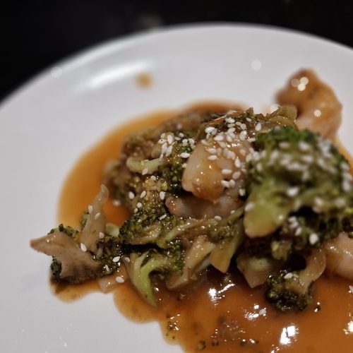 Szechuan Garnalen en Broccoli. Gerecht uit de Chinese keuken.