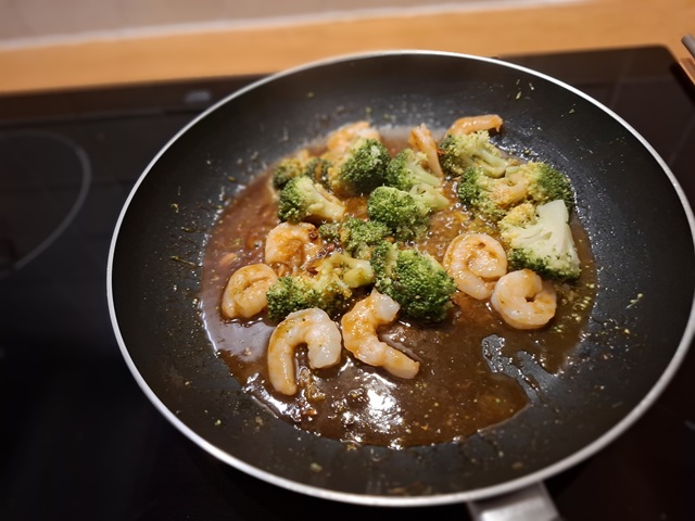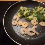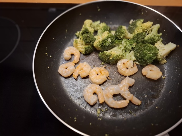 Voeg dan de garnalen toe en bak deze 2-3 minuten tot ze mooi roze zijn.