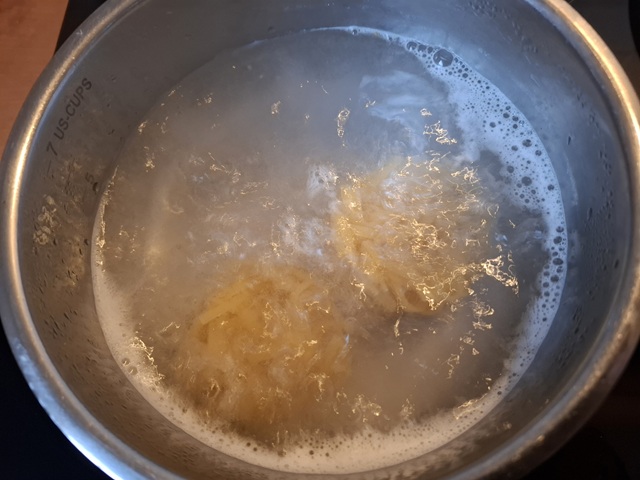 Kook intussen de pasta volgens aanwijzingen op de verpakking in gezouten water.