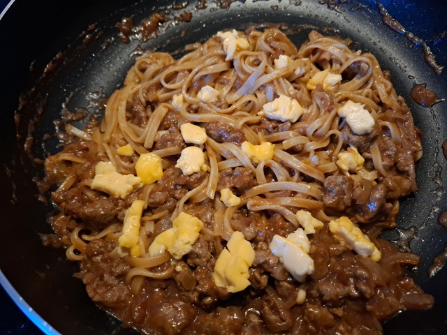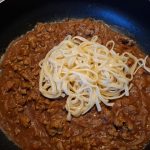 Verdeel de stukjes cheddar over het gerecht en laat nog even doorwarmen.
