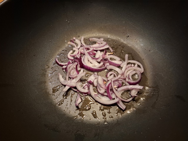 Laat de tonijn goed uitlekken. Verhit de olijfolie in een wok of hapjespan en bak hierin de ui 3 minuten. Voeg dan de knoflook toe en bak nog 1 minuut.
