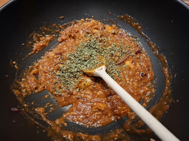 Strooi de peterselie over het gerecht en verwarm goed door.