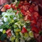 Was de tomaten en snijd deze in blokjes en doe ook in de pan.