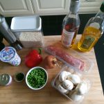 Zet alle ingrediënten klaar. Pel en snipper de ui. Snijd de paprika in blokjes. Maak de champignons schoon en snijd in plakjes. Snijd de varkenshaas in plakjes van ruim een cm. dik