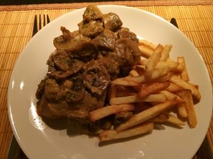 Varkenshaas met champignon-mosterdsaus