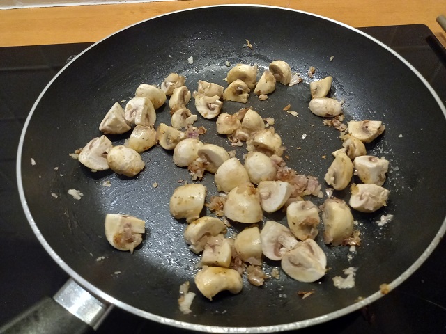 Voeg de champignons toe met wat zout en peper.