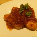 Verdeel de medaillons met de saus over de borden en garneer met de plukjes peterselie.