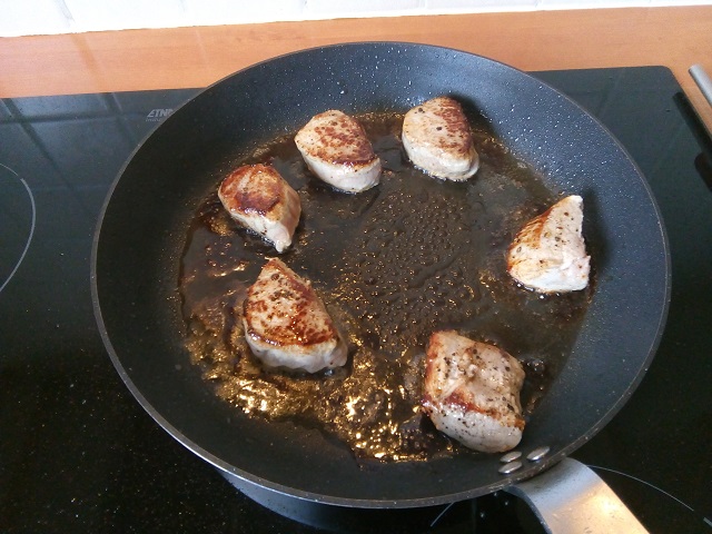 Verhit in een koekenpan op middelhoog vuur de olijfolie met 1 el. boter. Laat de pan een paar minuten opwarmen. Bak de medaillons aan iedere kant gedurende 2 minuten. Haal ze daarna uit de pan.