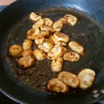 Voeg de andere lepel boter toe aan de pan. Zodra deze gesmolten is voeg dan de champignons toe. Roer af en toe om. Voeg de mosterd, knoflook en de Italiaanse kruiden toe. Roer goed door elkaar. Laat een minuutje zachtjes bakken. Voeg de sherry toe en laat weer een minuut zachtjes koken zodat de alcohol verdampt.