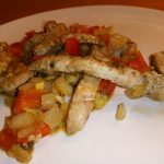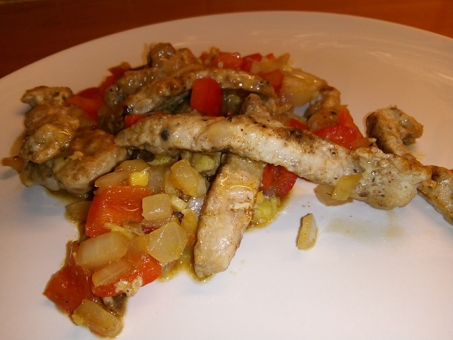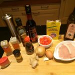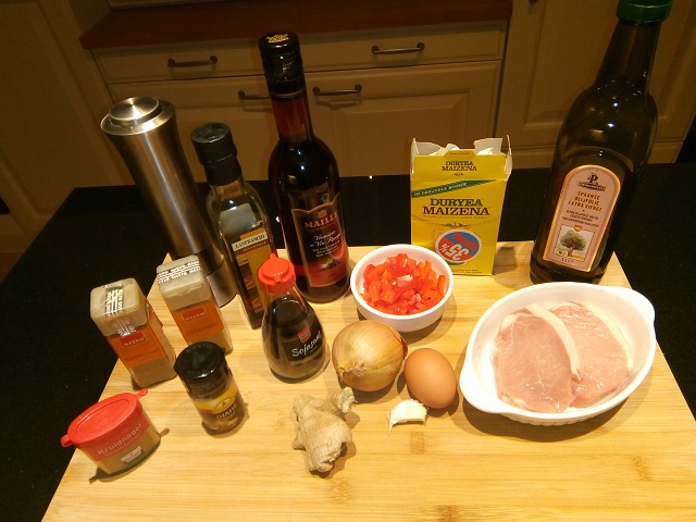 1. Zet alle ingredienten klaar. Snijd de filetlapjes in reepjes. Snijd de paprika in blokjes. Pel en snipper de ui en de knoflook. Snijd de gember klein.