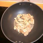 4. Verhit een scheut olie in een wok en bak de varkensreepjes aan beide zijden. Haal uit de wok en bewaar op een bord.