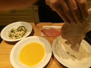 Varkensschnitzel uit Lyon met champignon-roomsaus