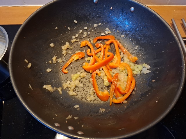 • ½ st Rode paprika in reepjes gesneden.