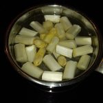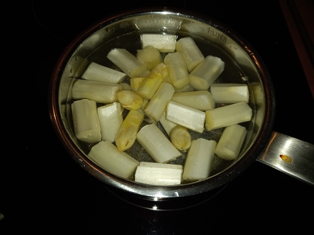 • 250 gr witte asperges geschild en in stukken van 3 cm. gesneden