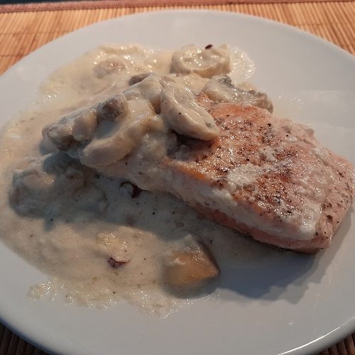 Je hoeft niet naar Florence in Italië te gaan om te genieten van dit thuis gemaakte snelle en makkelijke op Italië geïnspireerd zalm recept. Zachte zalm badend in een decadente romige saus gemaakt van kookroom, wijn en Parmezaanse kaas. Verse champignons geven een extra textuur en smaak aan dit heerlijke visgerecht.