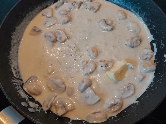 Voeg nu het klontje boter toe. Dit is bedoelt om een vollere smaak aan de saus te geven. proef de saus en voeg eventueel nog wat zout en/of peper toe.