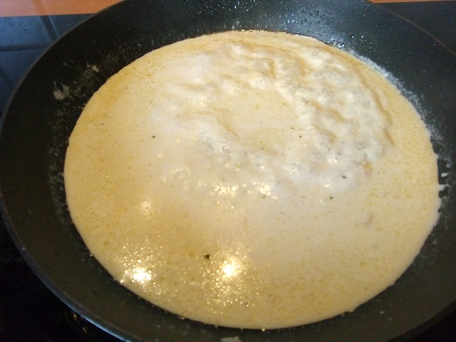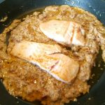 Voeg in de zelfde pan de kookroom, citroensap en de bouillon toe en breng aan de kook. Zet dan de warmtebron lager en laat wat inkoken.