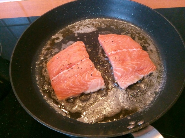 Zet alle ingrediënten klaar. Dep de zalm droog met keukenpapier.