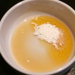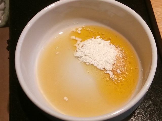 Meng ondertussen de ingrediënten voor de saus in een kommetje.