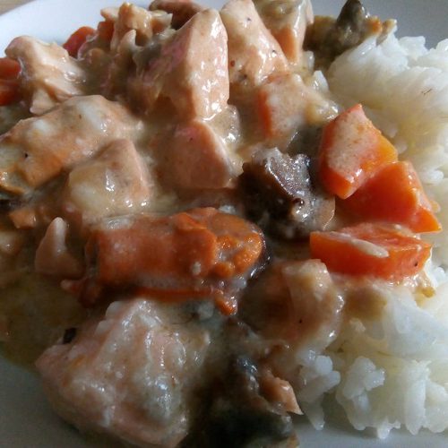 Maak de maïzena met een scheutje water en roer dit tot een papje en voeg de room toe. Voeg de zeevruchten en de mosselen toe en laat 20 minuten zachtjes koken. Kook intussen de rijst volgens aanwijzing op de verpakking.