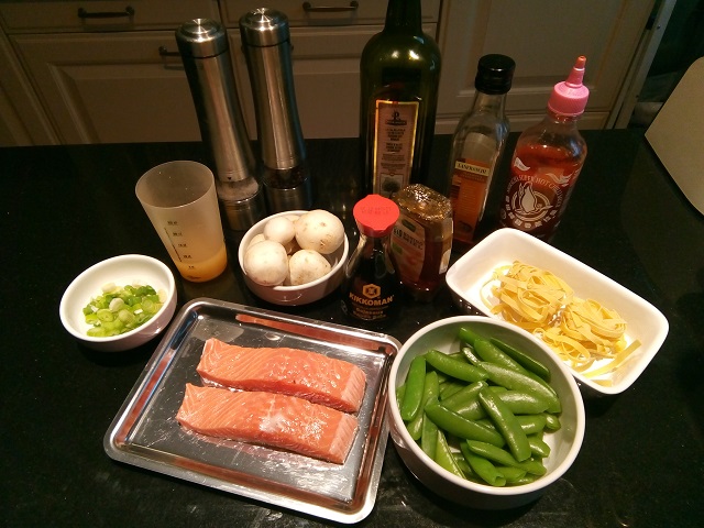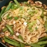 Zet alle ingrediënten klaar. Snijd de puntjes van de sugar snaps. Verwijder eventuele draden. Snijd de champignons in plakjes. Snijd de lente ui in smalle ringetjes. Zet een pan met water op met wat zout.