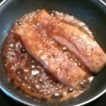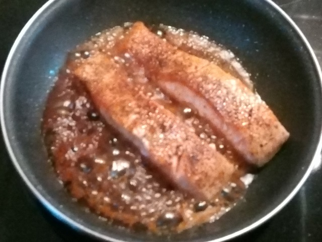 Verhit in een koekenpan de olie. Strooi zout en peper over de zalm aan de niet vel kant. Leg de zalm in de pan met de velkant naar boven en bak gedurende 4 minuten. Beweeg de zalm regelmatig zodat hij niet vast plakt aan de bodem. Keer de vis om. Bak deze nog 3 minuten.