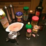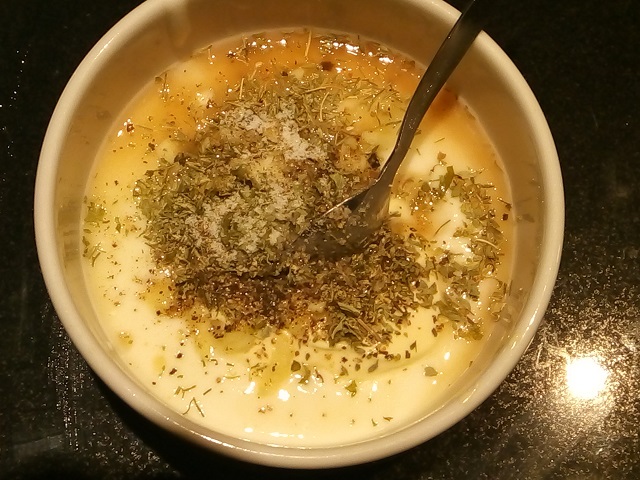 Meng in een ovenschaal de olijfolie, balsamicoazijn, citroensap, oregano, knoflookpoeder, suiker en het zout door elkaar.