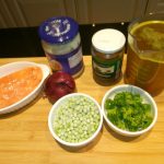 1. Zet alle ingrediënten klaar. Snijd de peterselie zeer fijn. Halveer de ui. Snijd halve ringen van één helft.