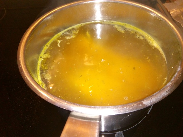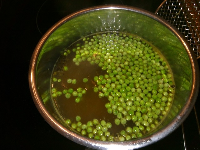 3. Verwarm de bevroren doperwten in de bouillon tot ze ontdooid en warm zijn. Zet zonodig de warmtebron hoger.