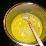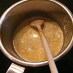 3. Snijd de koude boter in blokjes. Voeg de boter toe aan het bouillonmengsel. Voeg het sap van een halve citroen toe. Houd de saus warm maar laat niet koken.