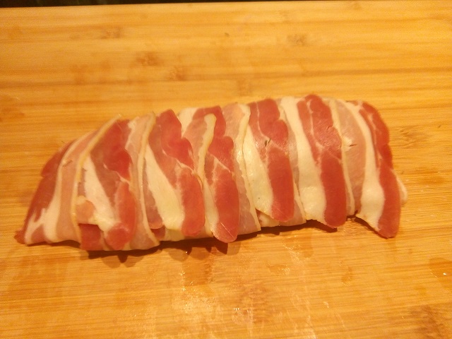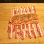Vouw het spek over de zalm. Zorg ervoor dat er geen gaten in het pakketje zit.