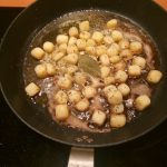 Voeg 30 gram boter toe aan de pan. Zodra deze begint te bruisen voeg dan de kriel toe met het laurierblaadje en de overige tijm. Bak deze mooi rondom aan. Voeg de visbouillon toe. Verlaag de warmtebon iets en laat de kriep 10 mminuten zachtjes garen.