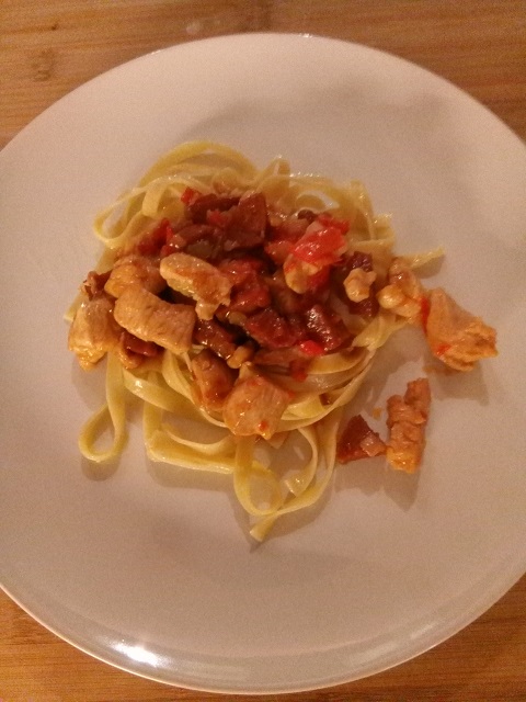 Verwarm een scheut olie in een koekenpan en bak het zalmpakketje aan alle kanten mooi aan. Haal het pakket uit de pan en bewaar op een bord.