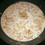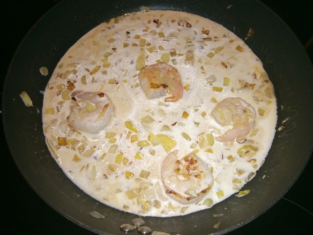 Voeg de witte wijn toe en kook deze 1 minuut. Voeg dan de kookroom toe. Men goed door elkaar en laat een paar minuten zachtjes koken zodat de saus wat dikker wordt.
