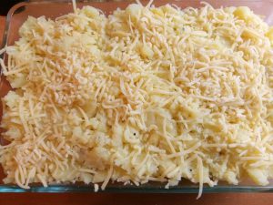 zuurkoolschotel met shoarma4 Als de aardappelen gaar zijn, stamp deze grof en verdeel over de schotel. Breng op smaak met wat zout, peper en wat ananassap. Facebook Comments