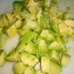 Snijd de avocado over de pit doormidden. Draai de twee helften in tegengestelde richting zodat er één deel los komt. Verwijder met een koffielepel de pit. Snijd het vruchtvlees in blokjes. Besprenkel met wat citroensap zodat het niet verkleurt.
