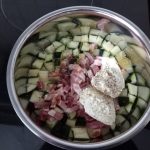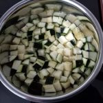 Doe de blokjes courgette in een pan. Voeg het water toe.