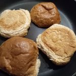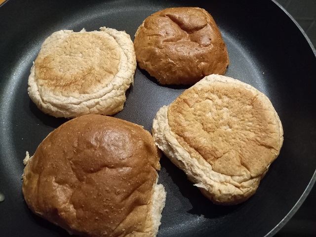 6. Snijd de broodjes door midden en grill deze in een droge koekenpan.