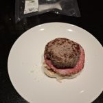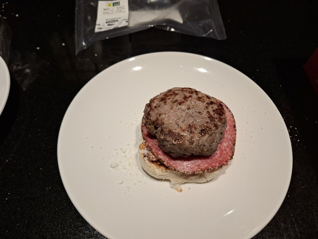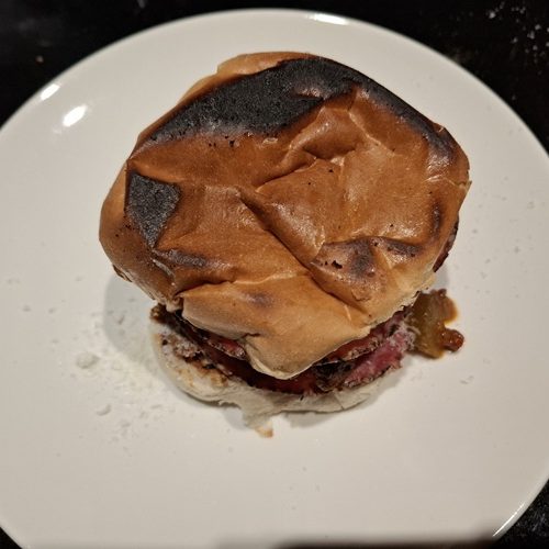 8. Leg hier de burger op. Bestrijk met nog wat pizzasaus, geraspte kaas en Pepperoni en leg de bovenkant van het broodje erop.