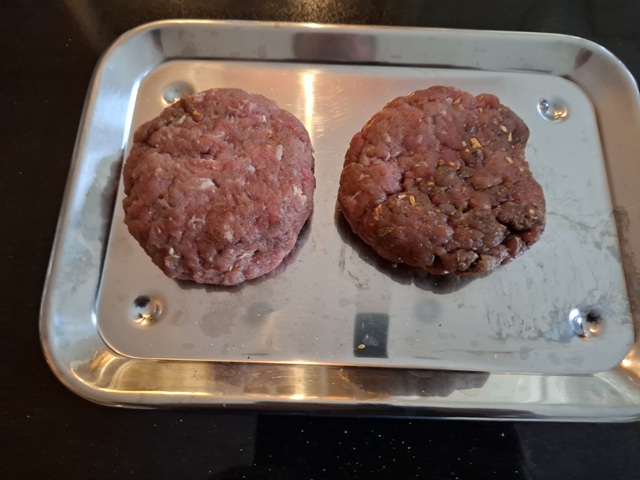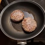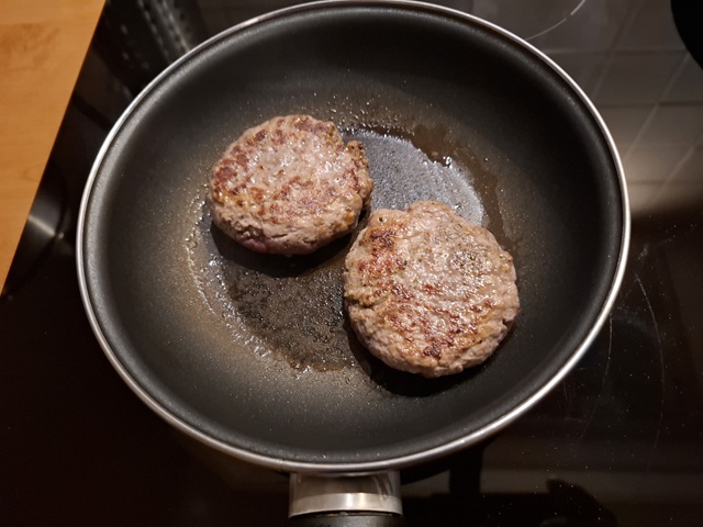 2. Verhit een koekenpan met de olie en bak de burgers aan beide kanten.