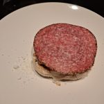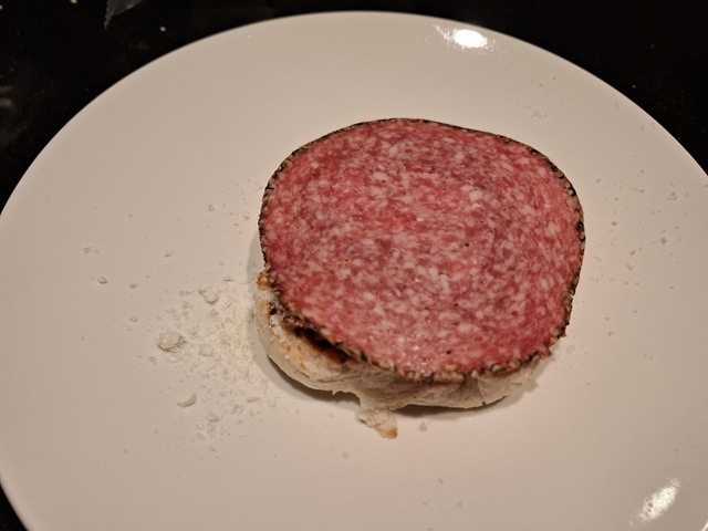 7. Leg hier een plak Pepperoni of andere worst op. Ik gebruikte pepersalami.