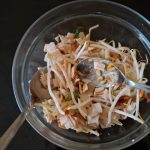 1. Maak eerst de dressing door alle ingrediënten voor de dressing in een kommetje door elkaar te roeren.