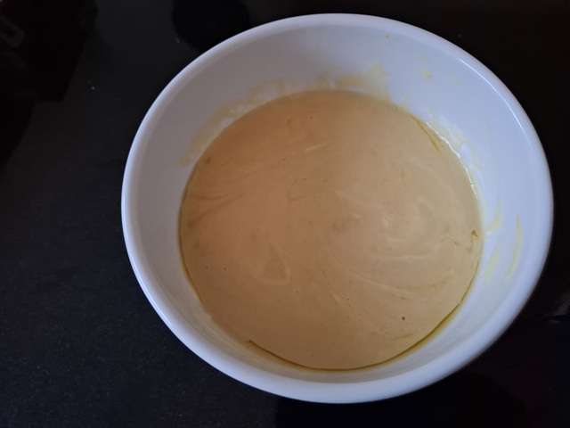1. Maak eerst de dressing door alle ingrediënten voor de dressing in een kommetje door elkaar te roeren.