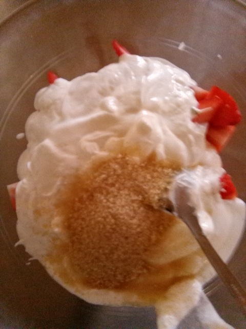 Aardbeien met yoghurt dessert