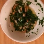Meng in een kommetje 2 el. olie met de knoflook, peterselie en de basilicum.