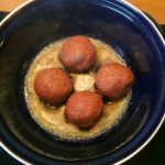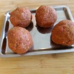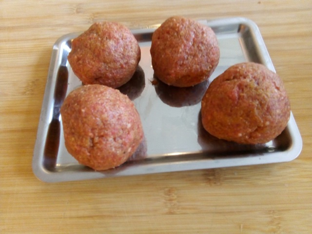 2. Verdeel het mengsel in vieren en draai er mooie ronde ballen van. (niet mijn sterkste kant). Leg de ballen op een plateautje en zet ze minimaal een half uur in de koelkast.