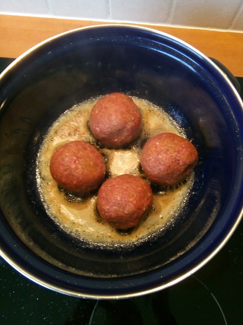 3. Verhit de boter in een braadpan. Laat de boter goed uitbruisen en bak dan de gehaktballen rondom bruin.