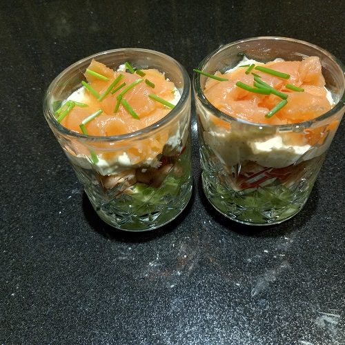 Glaasje met zalm en meer