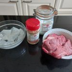 Zet alle ingrediënten klaar. Week de darm in een bakje koud water.