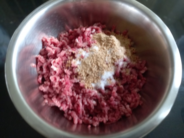 Weeg de kruiden af en meng dit door het vlees. Meng kort want je wilt niet dat het "pap" wordt.